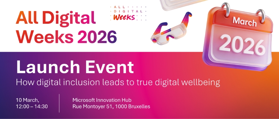 On 10 March 2026, policymakers, practitioners, researchers and digital inclusion advocates will gather in Brussels (Belgium) for the official launch of All Digital Weeks 2026, under the central theme: “Digital well-being for a competitive Europe.”