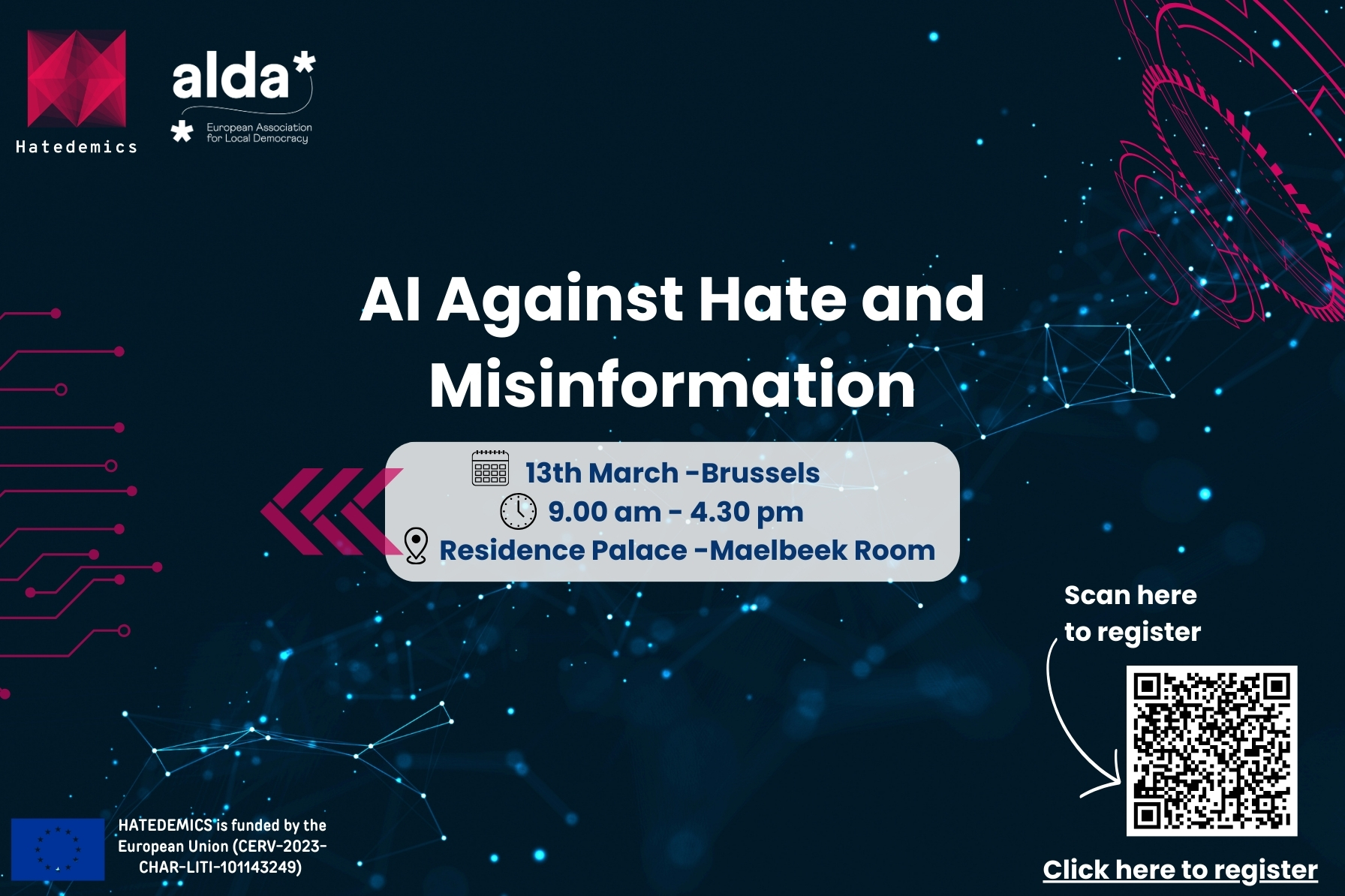 This one-day event will bring together experts, policymakers, civil society groups, and technology professionals to explore how artificial intelligence can help tackle hate speech and misinformation online. With keynote speeches, panel discussions, and interactive sessions, we will share the first results of the HATEDEMICS project—an initiative working to create new tools to detect, analyse, and challenge harmful content while promoting ethical and inclusive digital spaces.