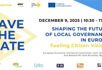 Ottobre 14, 2025On 9 December 2025, ALDA will host the Citizens Foresight Europe event at the EESC in Brussels, gathering stakeholders to co-create policy ideas and explore the future of local governance through foresight, open dialogue, and scenario-building methods that empower citizens to shape Europe’s democratic future.