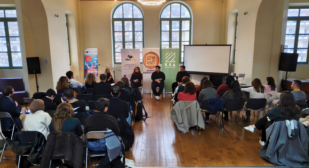 The famous Greek youth centre, Komotini, welcomed young people from across Europe to the ProVote event “Mobilising Citizens for Stronger European Democracy“. The one-day programme brought together around 40 participants from Belgium, France, Germany, Greece, Italy, North Macedonia, Romania, and Spain, offering interactive workshops, panel discussions, and debates designed to strengthen democratic engagement and understanding of the European Parliament.